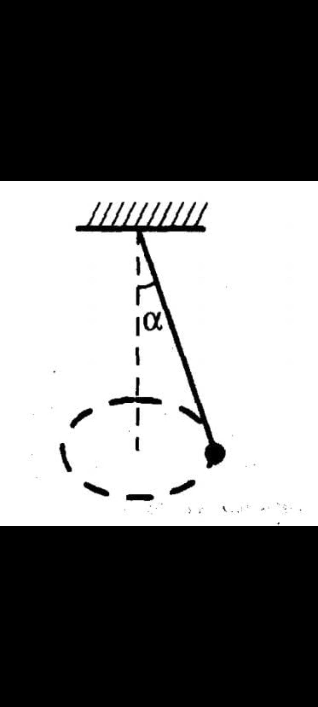Шарик на нити длиной 1 равномерно движется по окружности в горизонтальной плоскости (см. рисунок). При этом нить все время образует с вертикалью угол а (такую систему называют коническим маятником). Найдите период Т вращения шарика. !