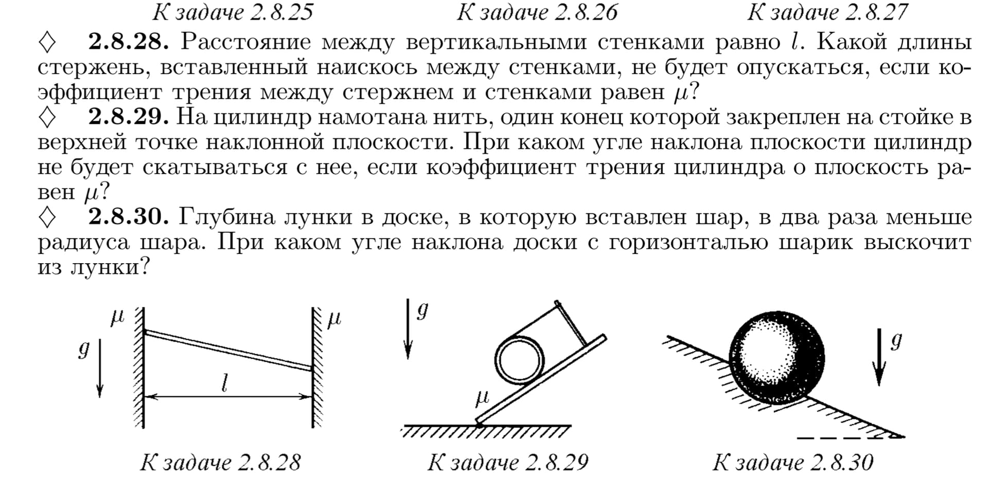 стержень, вставленный наискось между стенками, не будет опускаться, если коэффициент