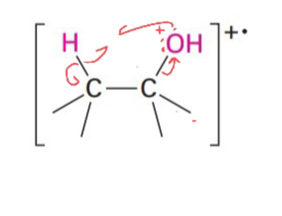 Вы кажется не поняли моего вопроса.После альфа расщепления образовался катион-радикал,электрон оказался на атоме кислорода.Так вот ,в книге написали что идет Е2 элиминирование,но мне не понятно как