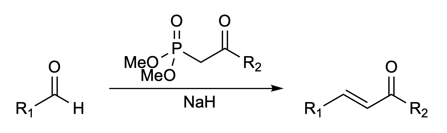 Какие именно субстраты и продукты там я сказать к сожалению не могу. Не из-за того, что я плохой химик, а из соображений конфиденциальности. Единственное о чем разрешено говорить то, что там реакция Хорнера - Водсворда - Эммонса (HWE). Проще говоря, разновидность реакции Виттига.