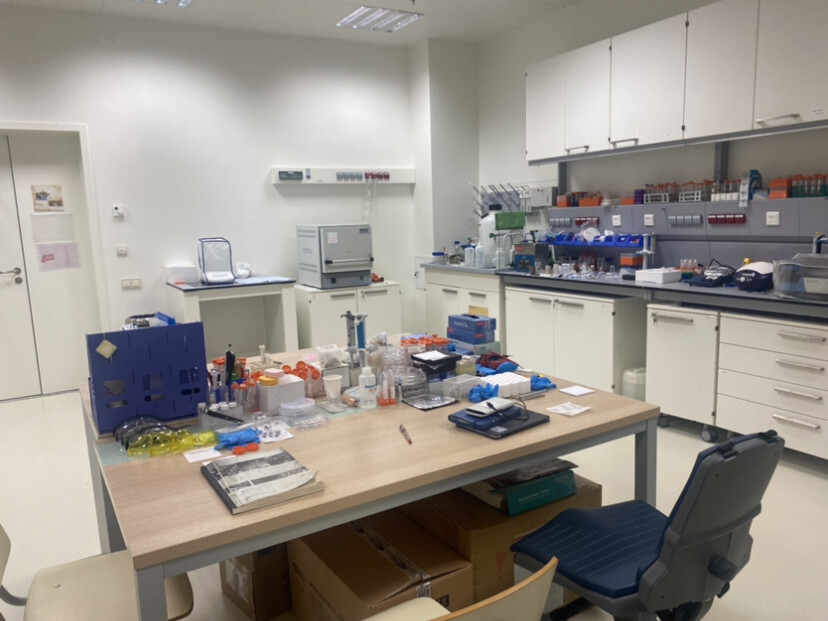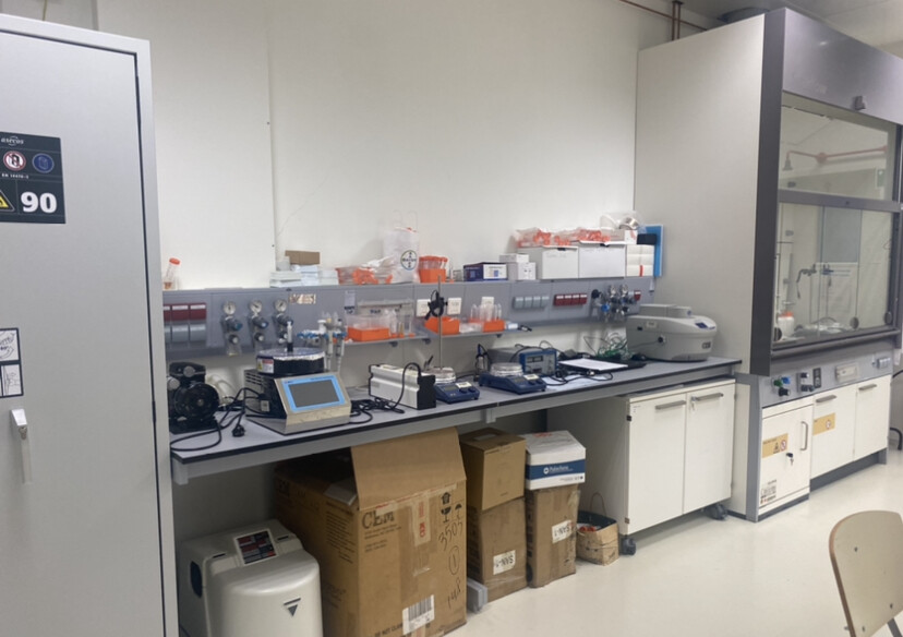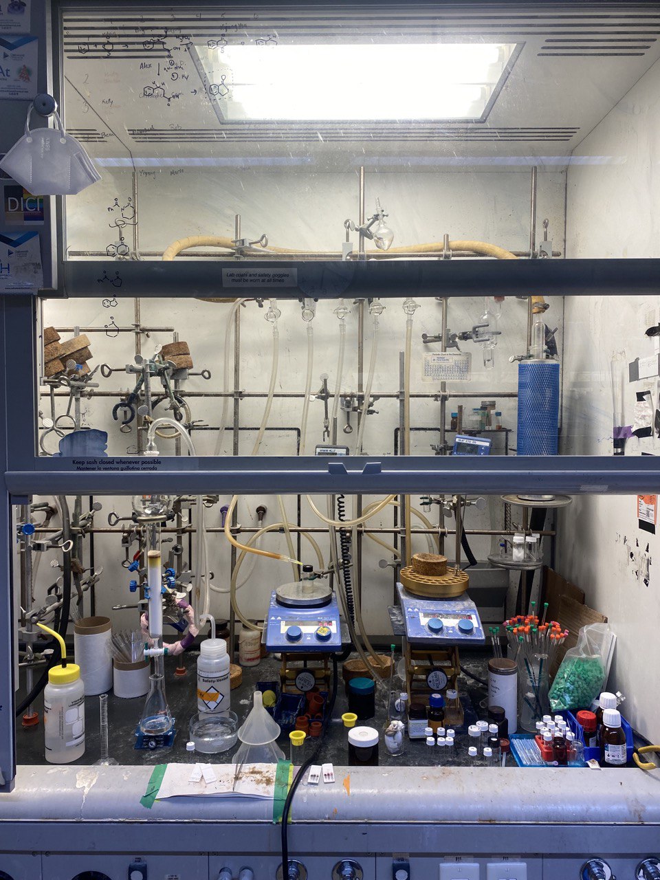 Внутри можно увидеть, что идет реакция и бежит колоночная хроматография. Вообще много вещей всяких, но это работать не мешает. Также можно увидеть стекла, на которых маркером можно рисовать всякие реакции. Я, честно говоря, в первое время от этого фанател!