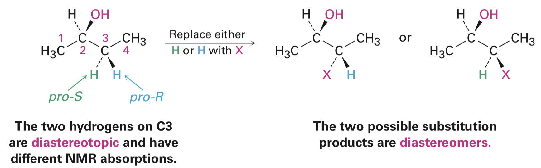 Дальше следует довольно неинтуитивный шаг что это влияние распространяется не только на водороды которые уже диастереомеры, но и на прохиральные атомы (которые приводят к образованию диастереомеров), но что поделать, ЯМР штука сложная.