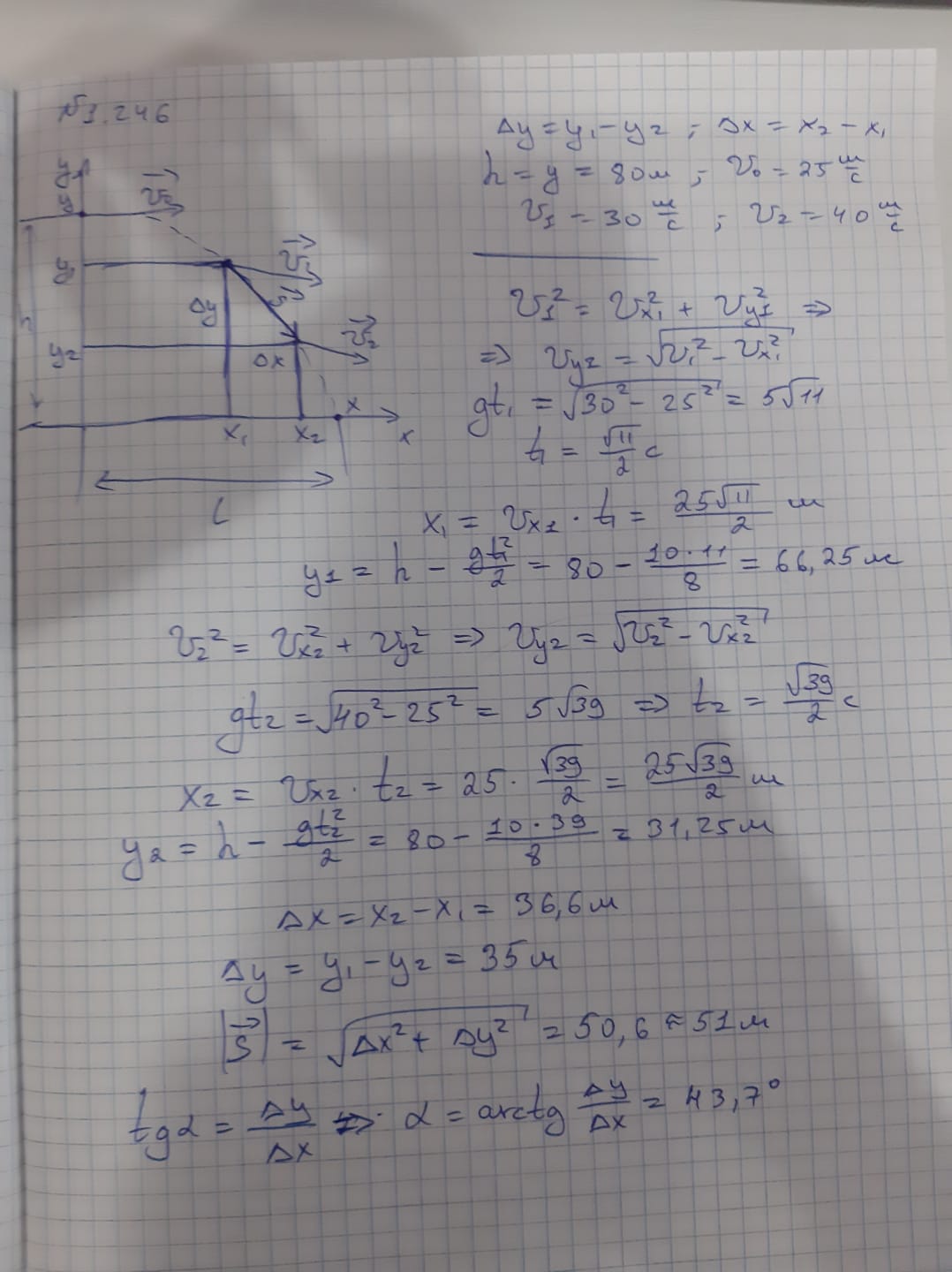 посмотрите правильно ли я решил? ответы вроде как совпадают 51.7м в книге а мой 50.6м