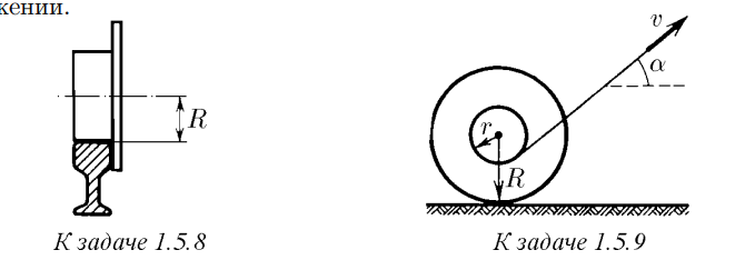 В 1.5.8. движение точек складывается из суммы поступательной скорости центра колеса и скорости вращения относительно этого центра, а ускорение точки высчитывается по обычной формуле центростремительного ускорения
