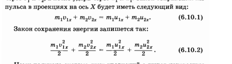 Ну для начала стоит вспомнить, какие законы сохранения применимы в этой задаче. Elastic collision – упругое столкновение, в котором сохраняется импульс (как и почти во всех задачах на столкновения) и энергия.