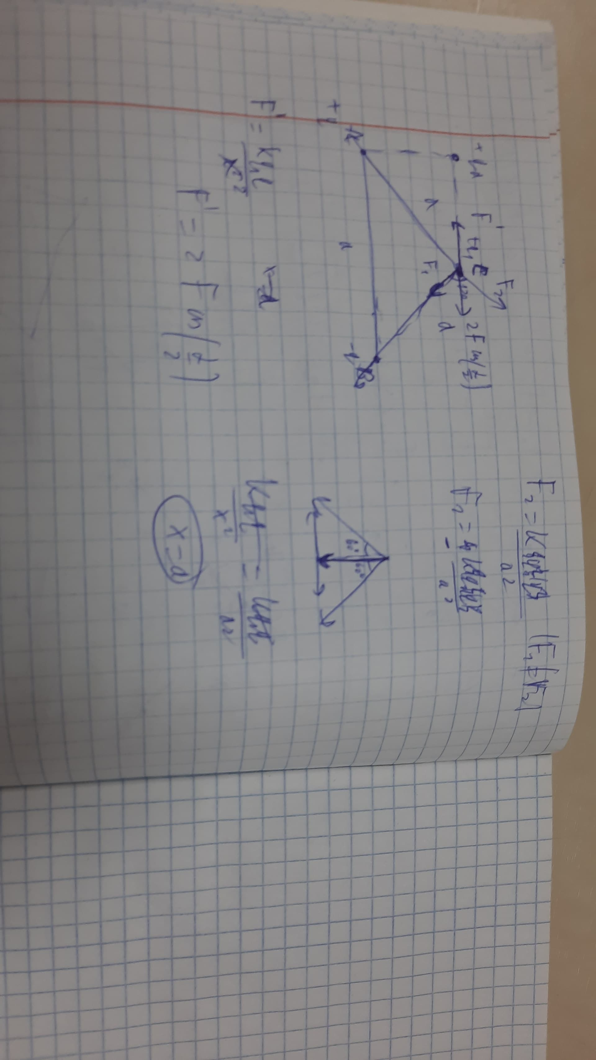 А в чем проблема? По уравнениям у тебя правильно вышло, что точка D расположена на расстоянии x=a от нашего заряда q_1 по горизонтали. В нашем случае точка D должна находиться справа, чтобы уравновешивать силу со стороны зарядов А и В.