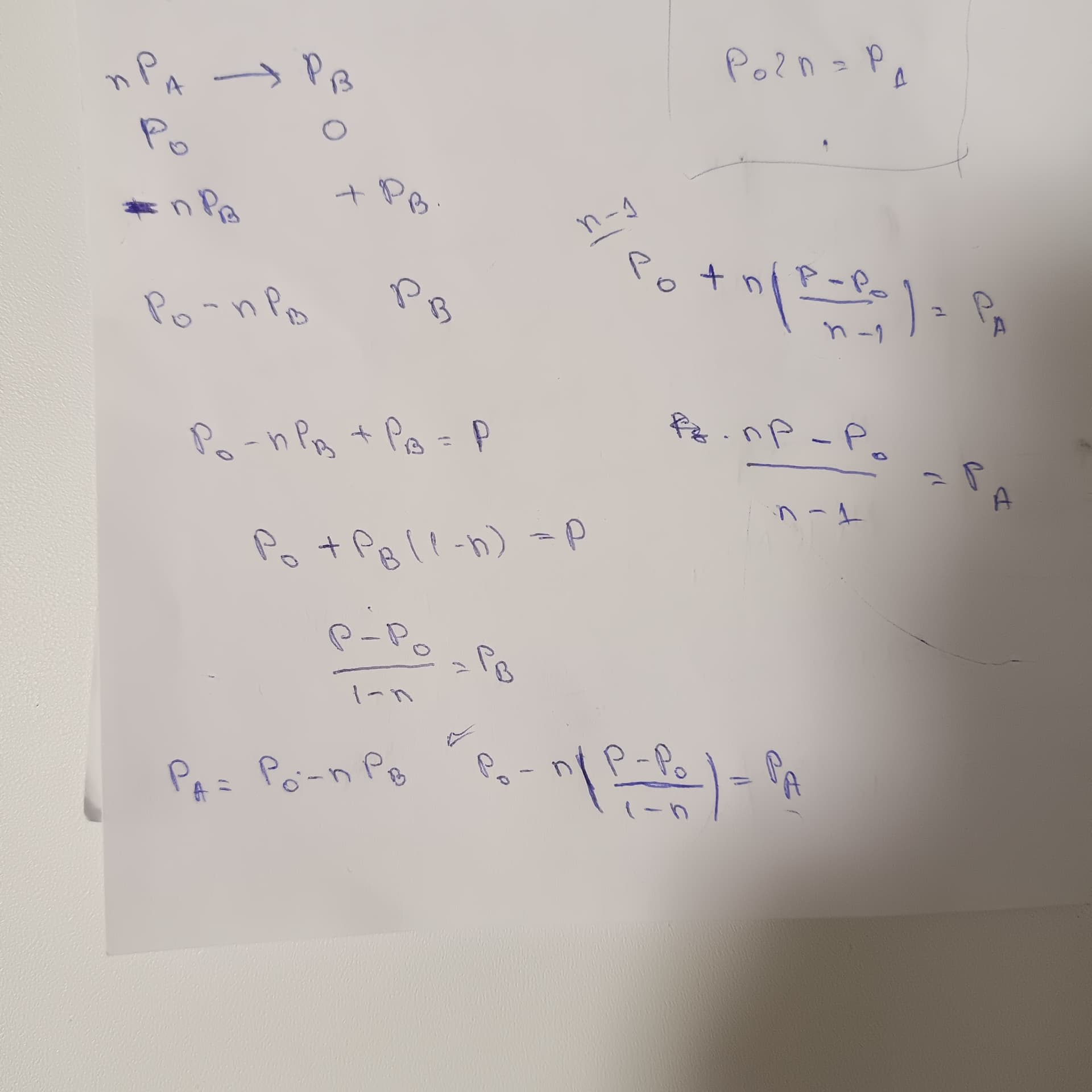 Для газофазной реакции n-го порядка nA → B выразите скорость образования вещества B через суммарное давление.