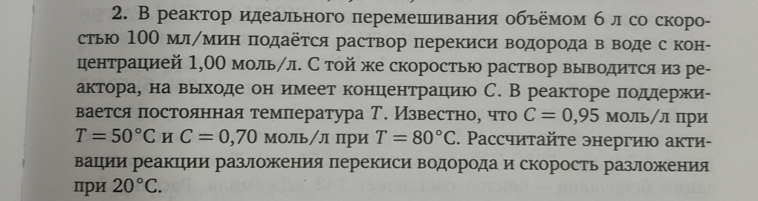 Смотри, есть уравнение с помощью которого нужно использовать интересующие тебя данные. Тебе дан реактор идеального перемешивания, а таком реакторе все частицы движутся в заданном направлении не перемешиваясь с движущимися впереди и сзади и полностью вытесняя подобно поршню находящиеся впереди частицы потока, и время пребывания всех частиц в аппаратах идеального вытеснения одинаково, то есть временной характеристикой реактора служит вот такое уравнение: r=V/V(c)