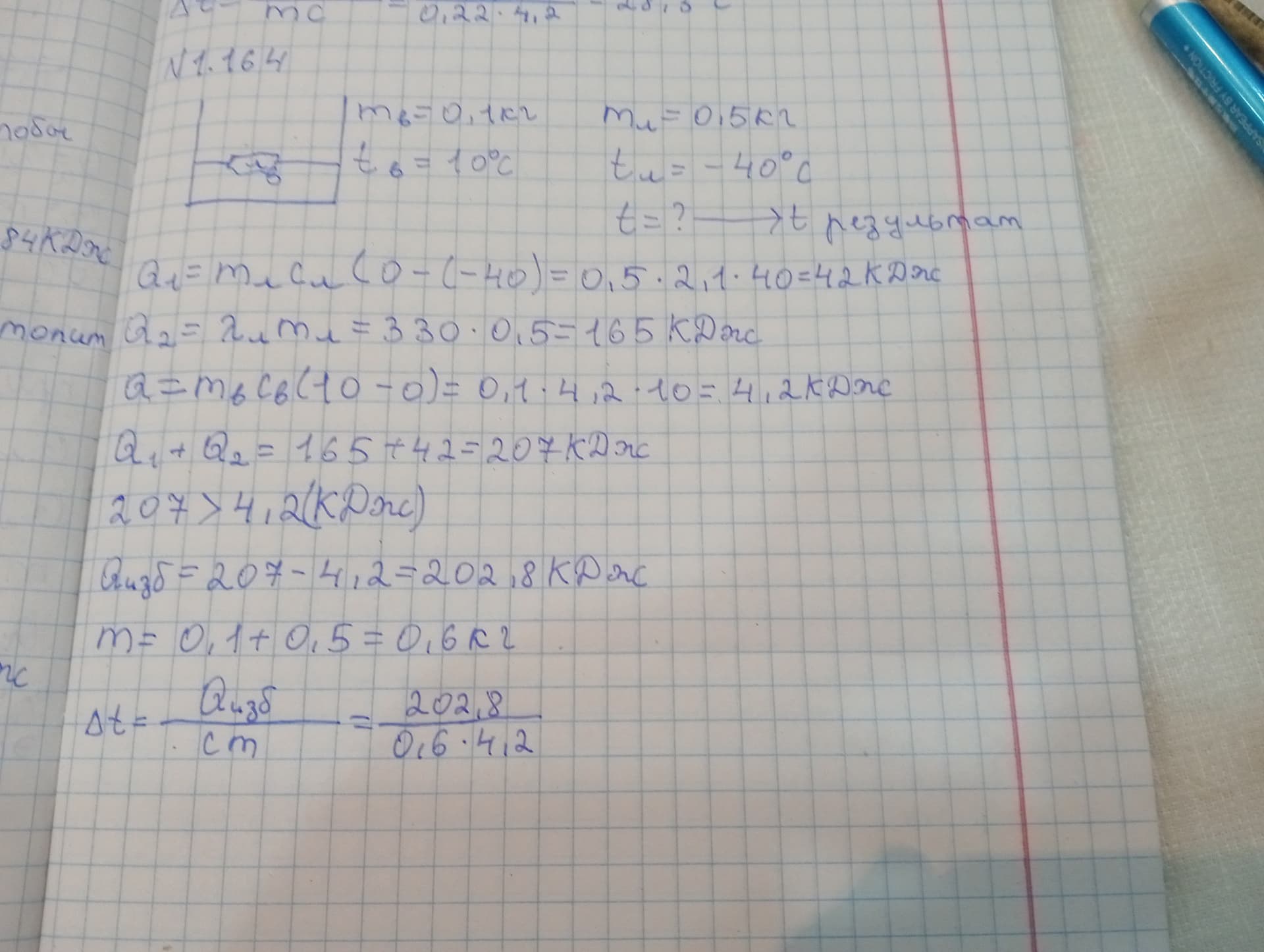 В формуле количества теплоты уходяшей у воды должно быть (0-10)⁰С, из-за этого появится минус