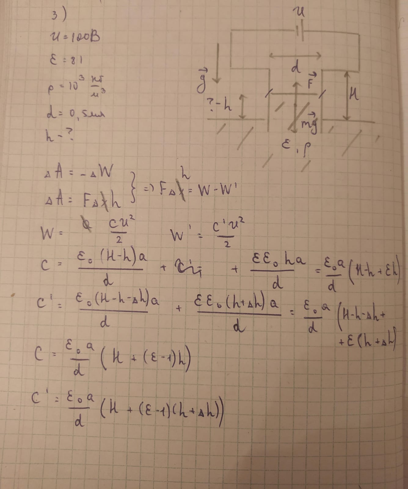 у тебя ошибка в математике, на второй фотке первое уравнение неправильное, ты забыл что ( ε-1)(h+dh) должен быть с минусом тогда выйдет (1- ε)dh