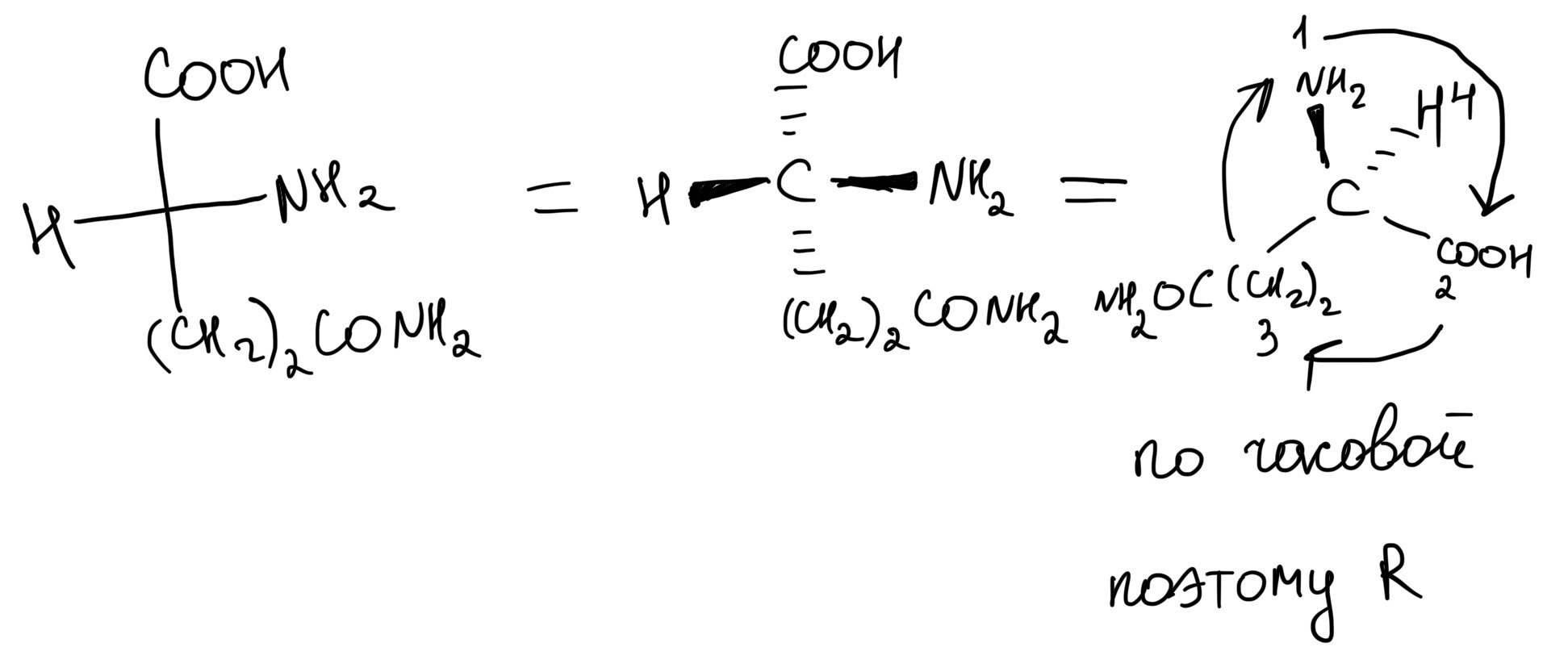 Вообще, ваш нарисованный S-глутамин является R-глутамином.