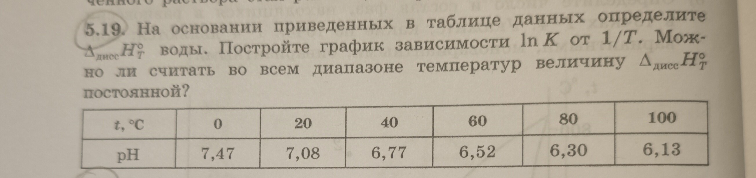 На основании приведенных в таблице данных определите ∆диссH воды. Постройте график зависимости lnK от 1/Т. Можно ли считать во всем диапазоне температур величину ∆диссH постоянной?