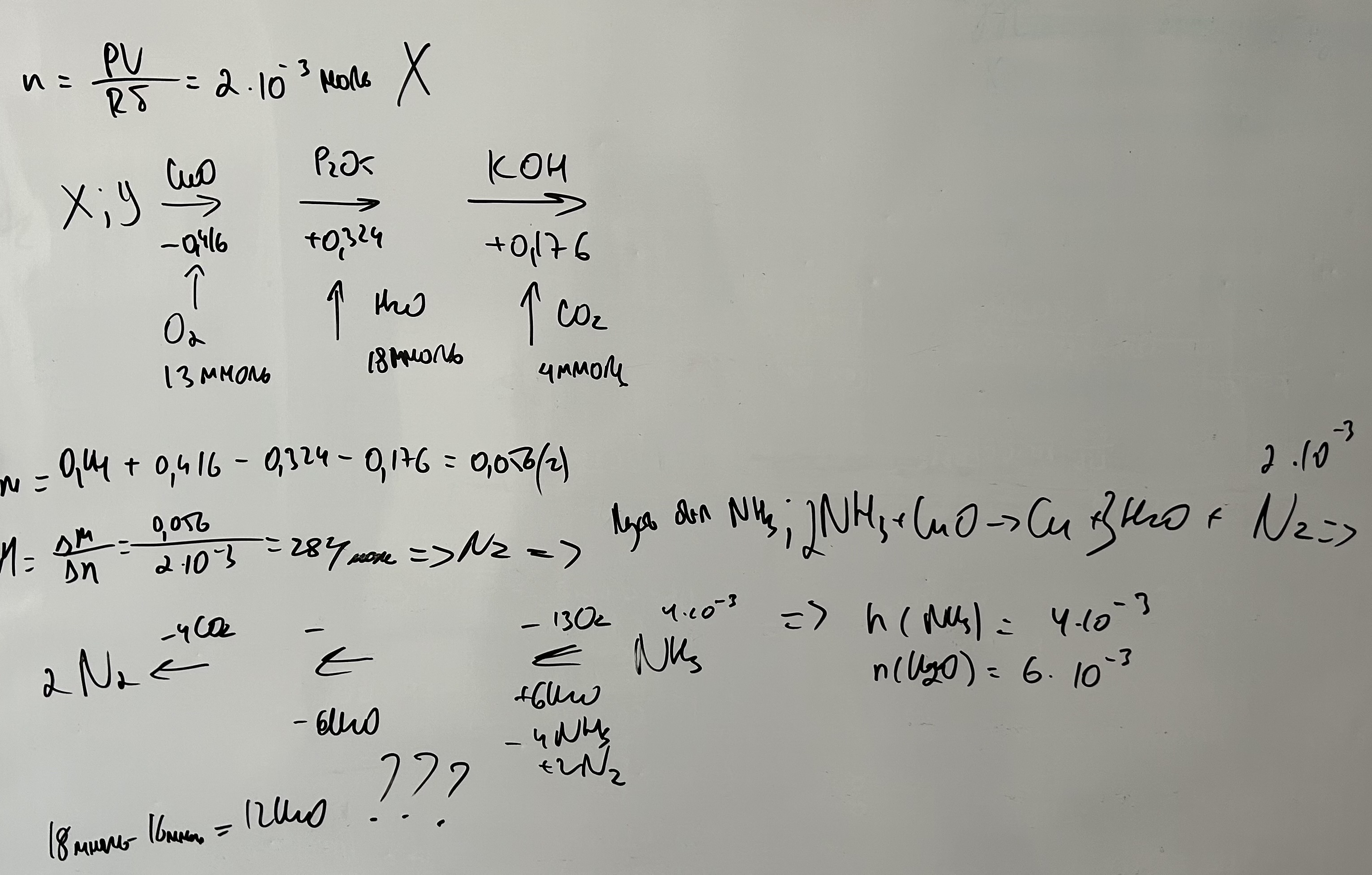 Предполагала разное, не вышел вариант когда изначально был чисто азот, поэтому пришлось взять аммиак. Но тогда углекислый газ не пойдет. Еще не подошел водород.