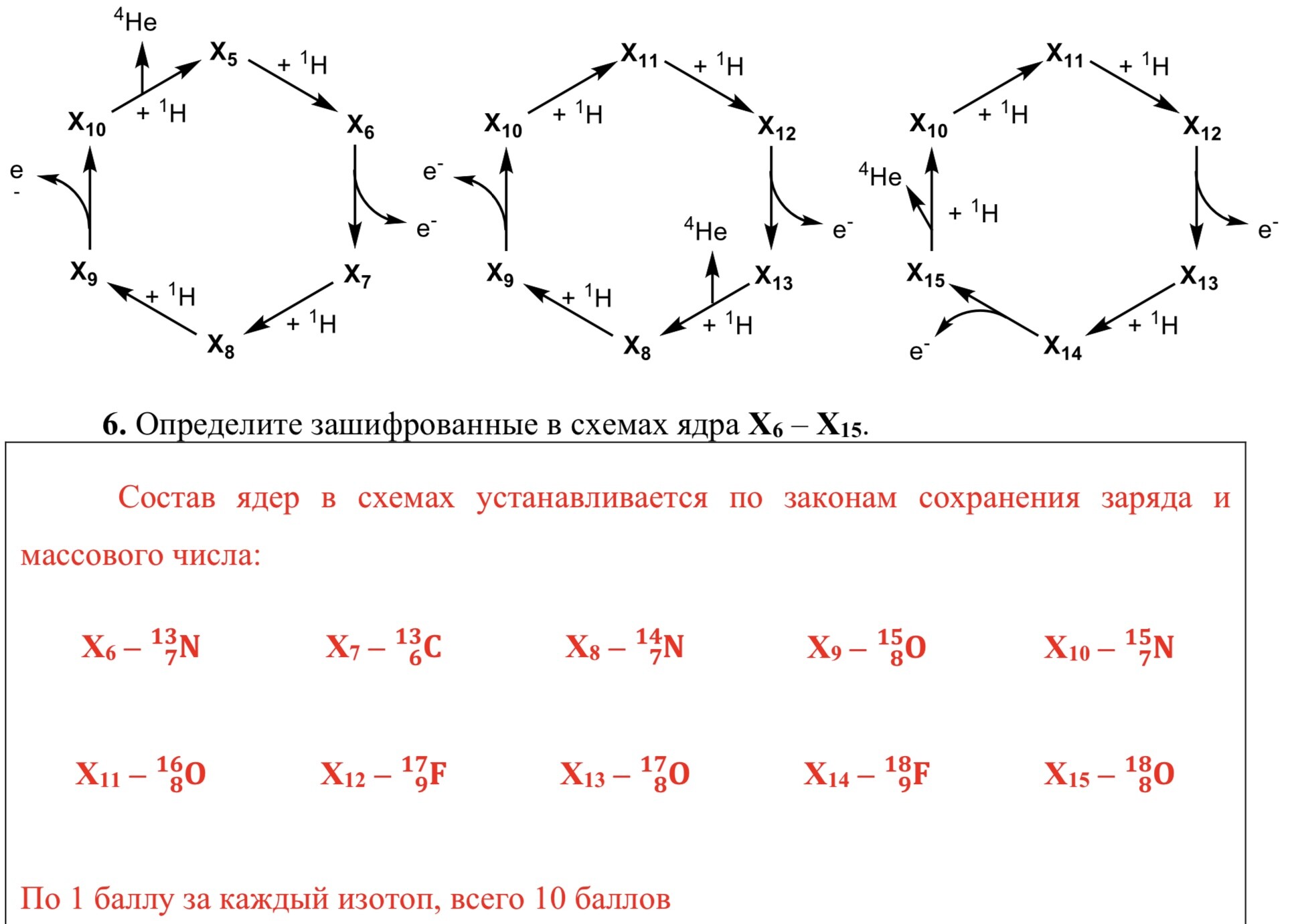 Чекните X_{6} \rightarrow X_{7} Тут тупо отлитает электрон? Значит бета распад, в котором нейтрон превращается в протон? Тогда О^{13} должно было образоваться же? Ну а если это бета-захват, тогда почему не написали +е^{-} как с протоном сверху?