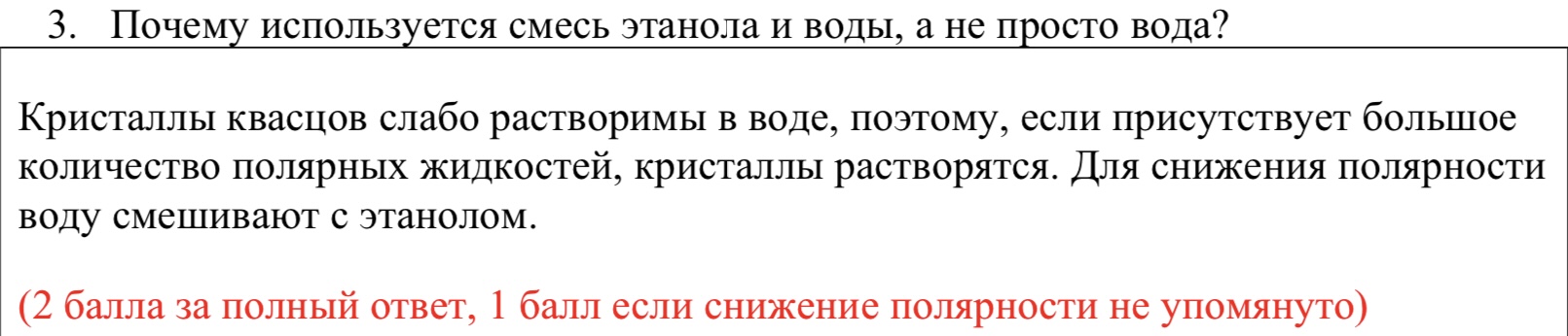 Вообщем они используют смесь этанола и воды, чтобы очистить квасцы, как я понял они не хотели, чтобы те растворялись. Но тут же написано, что эти кристаллы и так плохо растворимы в воде, можно было и водой промыть, а так они добавляют этанол, вроде как снижают полярность, но зачем? Типо так кристаллы вообще не растворяться, или почему-то понадобилось его растворять?