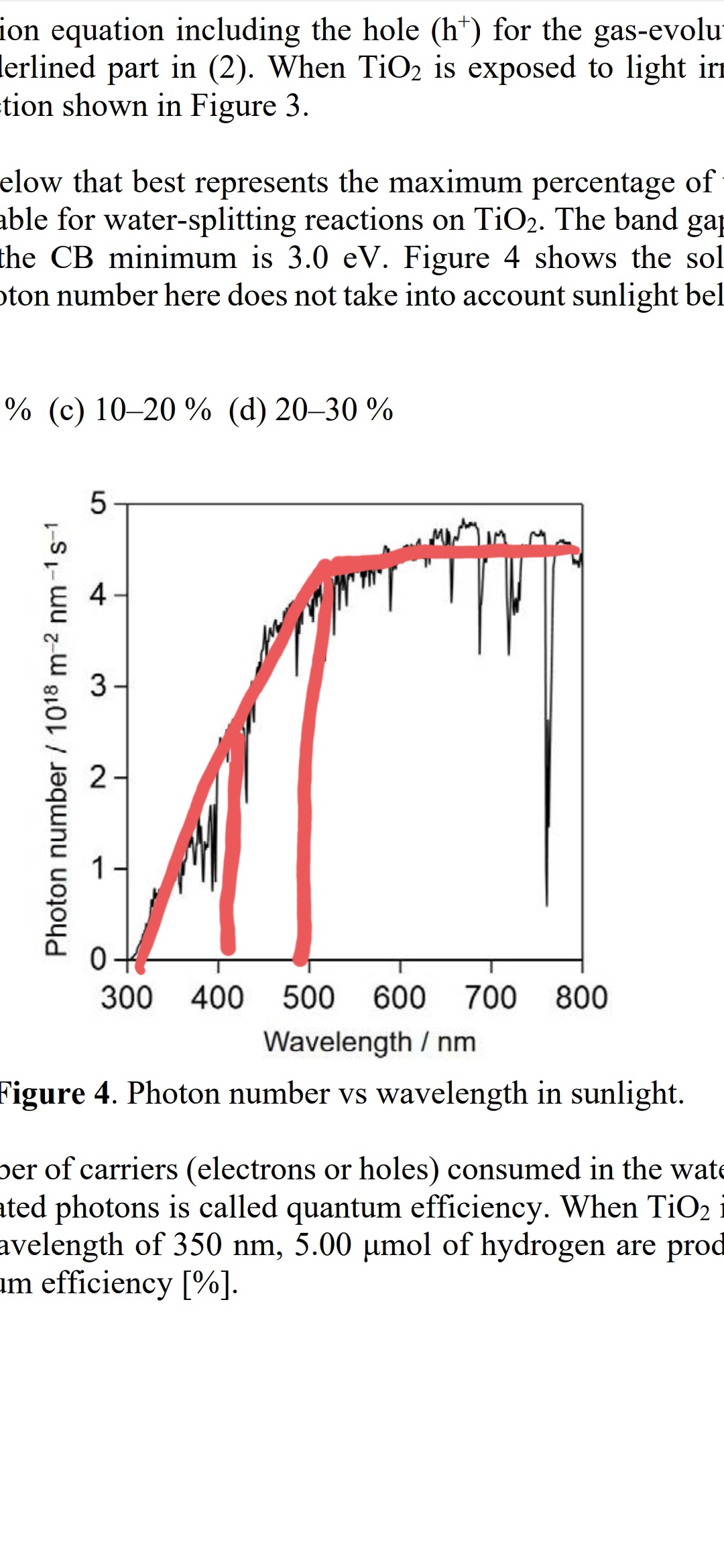 Как вы считаете, какую долю занимает площадь, окрашенная в красный цвет от всей площади целого спектра (300-800 нм) ?