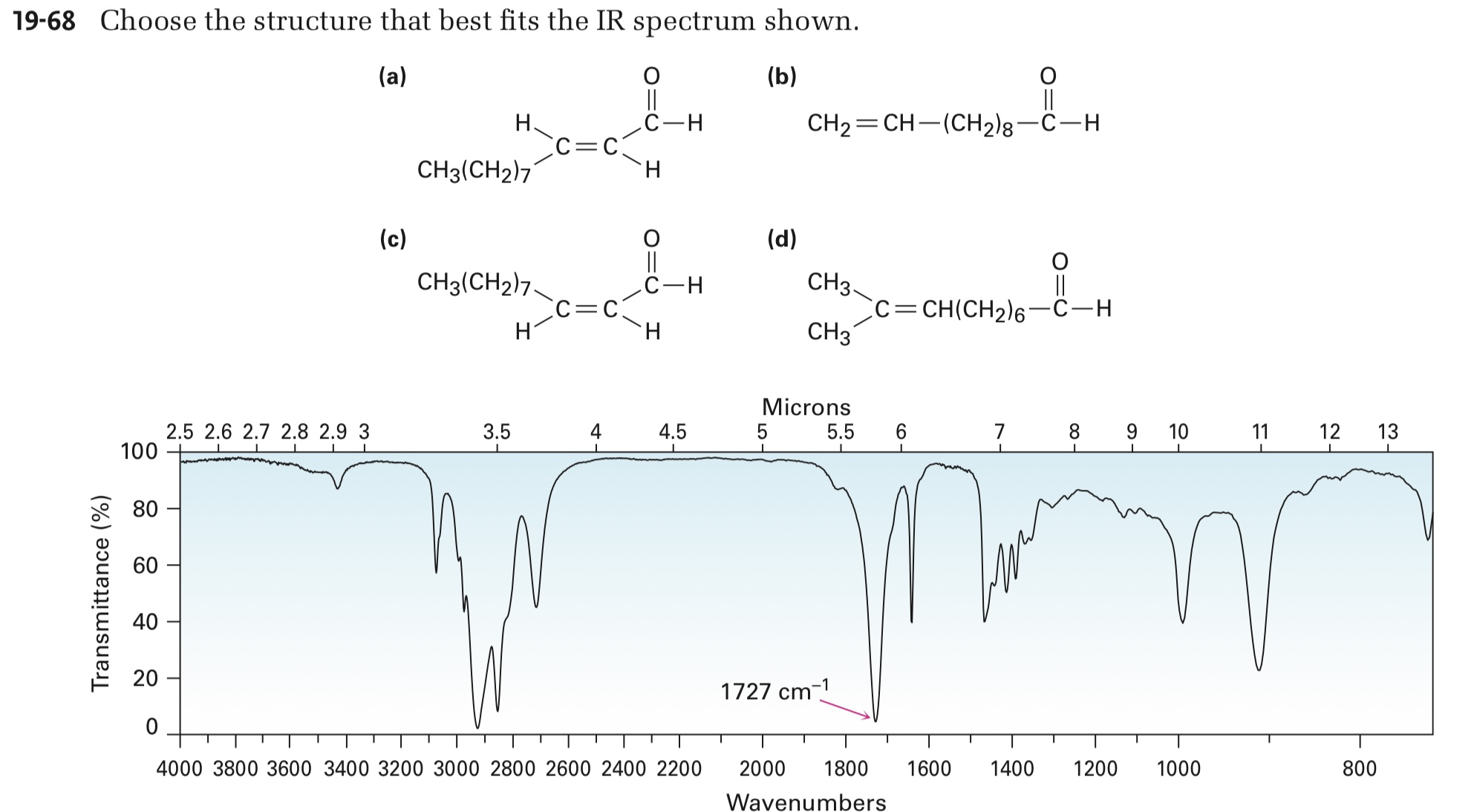 А еще, ты знаешь, что сопряженные альдегиды имеют пик у 1705, а обычные у 1730. Поэтому можно убрать (а) и (с) вариант