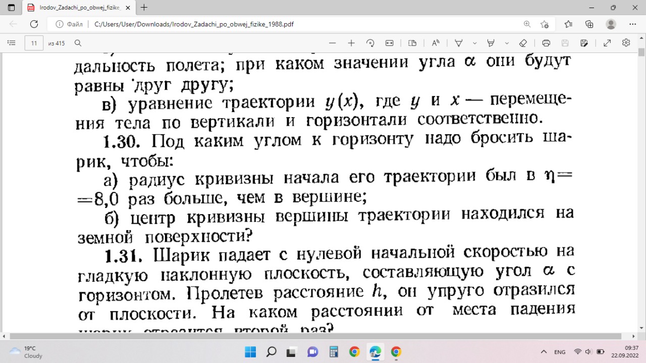 где \rho – радиус кривизны траектории. Чему равно это ускорение при свободном полёте? Компоненте ускорения \vec g, которая перпендикулярна к вектору скорости \vec v. То есть если \vec v направлена под углом \alpha к горизонту, то нормальная проекция ускорения тяжести равна g\cos\alpha.