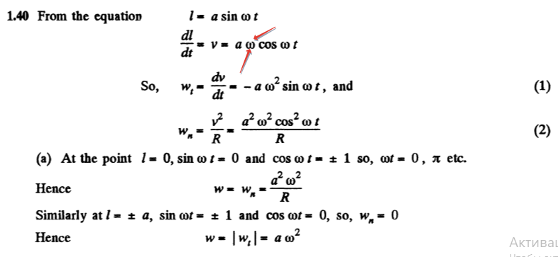 Это может прозвучать глупо но я не могу понять откуда взялось ω в уравнении dl/dt? Я когда дифференцировали уравнение l=asinωt у меня вышло v=acosωt а не v=aωcosωt и я не понял почему там оказался ω.