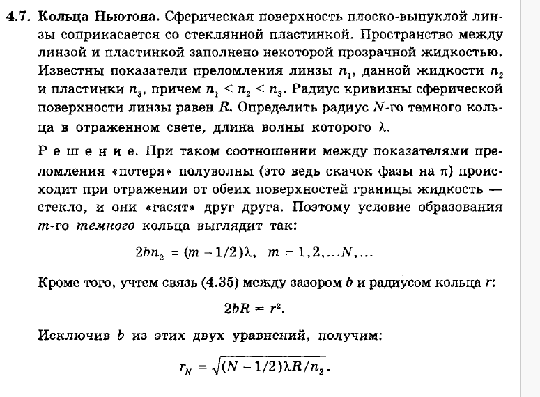 Вопрос: разве здесь не должно быть 2bn_2=(m+\frac{1}{2}) \lambda, я понимаю что не влияет роли плюс или минус когда идет речь просто о темных полос, но именно для радиуса N-го кольца должен быть плюс(кажется)