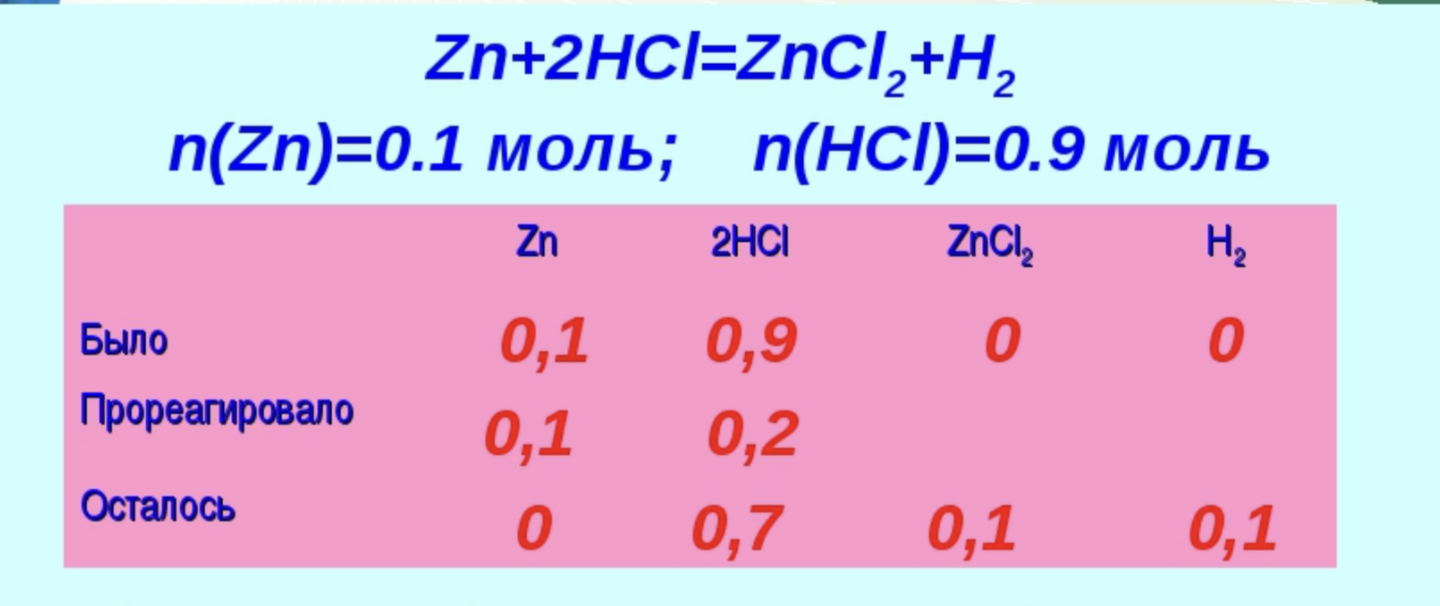 - Сделать небольшую таблицу, в которой ты напишешь 1) сколько у тебя было реагентов 2) сколько у тебя прореагировало и сколько в итоге осталось