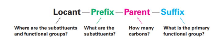 Написано что название органического соединения по IUPAK состоит из следующих частей:
