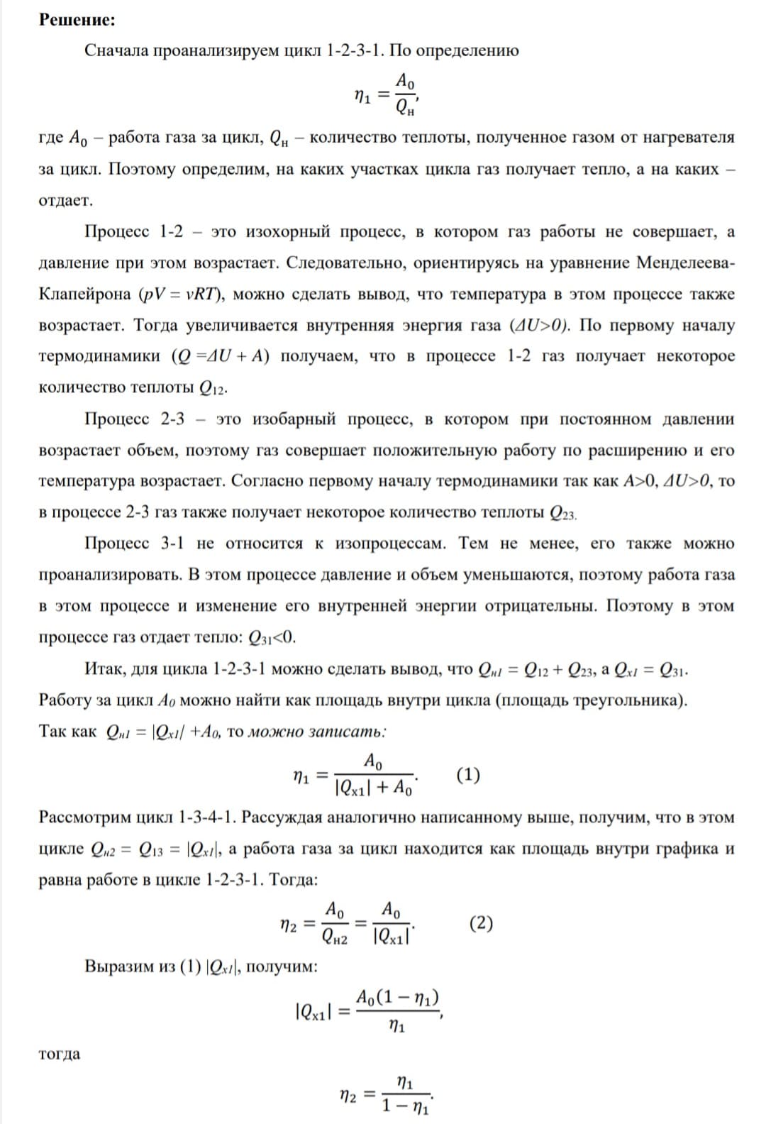 КПД тепловой машины, работающей по циклу 1-2-3-1 равен \eta_0 (рис. 2.3). Найдите КПД тепловой машины, работающей циклу 1-3-4-1.