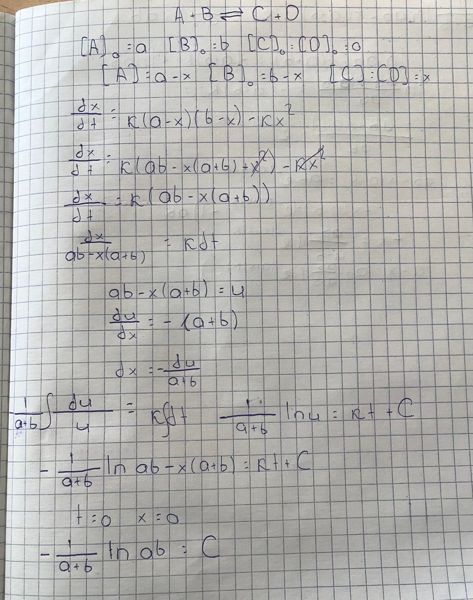 Лично я посоветовал бы выражать все через [A] , вместо x, тогда объем решения значительно сократится.