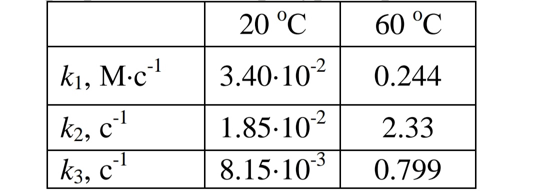 Определите кинетические параметры А и Е в уравнениях Аррениуса для k_1, k_2 и k_3