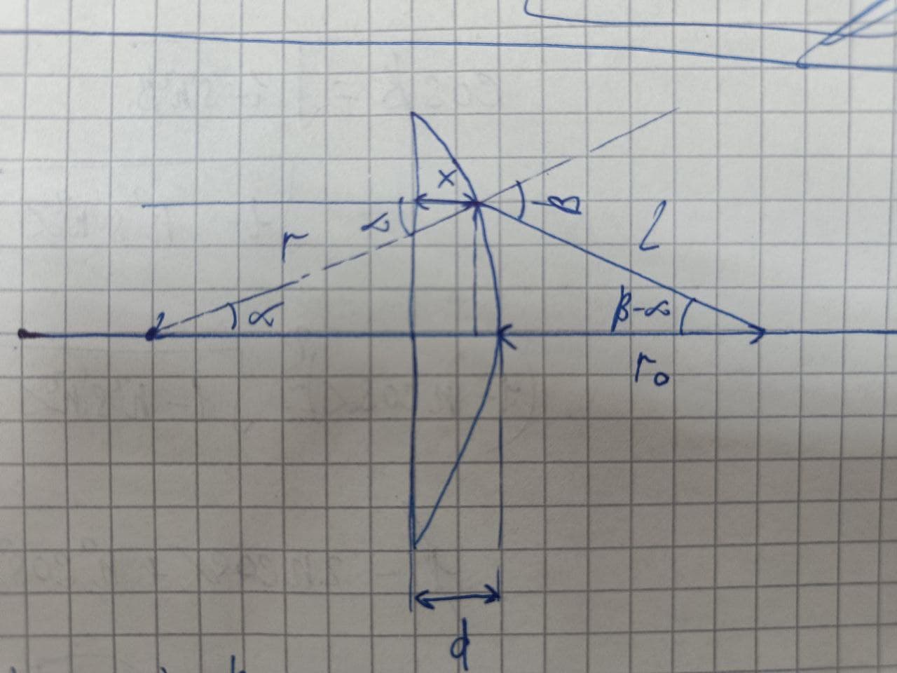 Хотели бы вы, чтобы я подробнее объяснил какой-то конкретный шаг этого вывода? Или, возможно, вам было бы полезно увидеть графическое представление хода лучей с указанием всех углов?