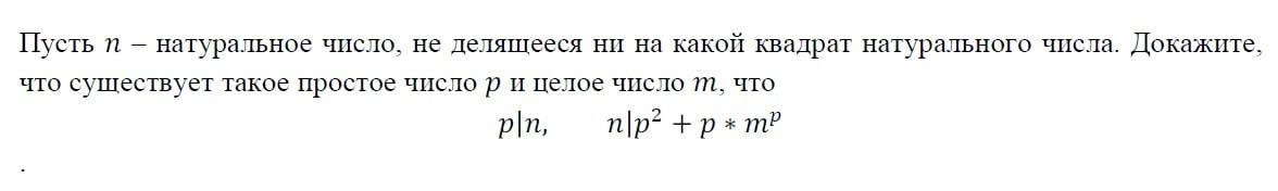 Доказать что для любого n свободного от квадратов существует целое m и простое p, что (n,p) = 1, и n | m^p+p
