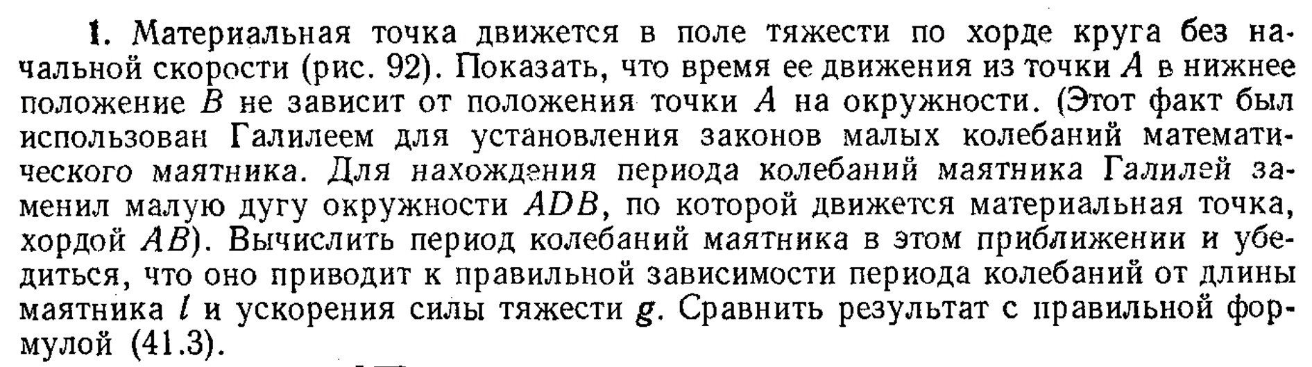 хордой АВ). Вычислить период колебаний маятника в этом приближении и убедиться, что оно приводит к правильной зависимости периода колебаний от длины