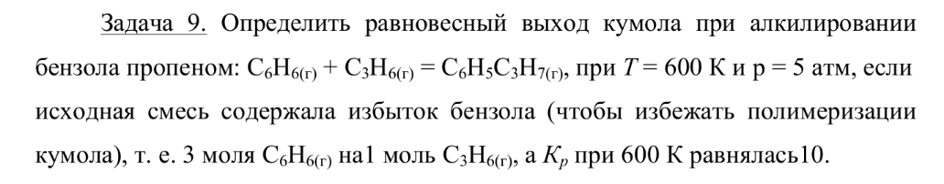 K_{p} = \frac{x_{C_{9}H_{12}}}{x_{C_{6}H_{6}*}x_{C_{3}H_{6}}}*\frac{1}{p_{total}}