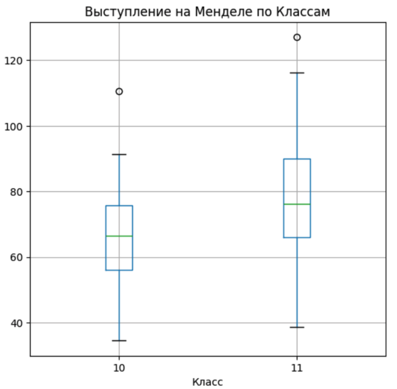 В принципе, ожидаемо, что 11 классники в среднем пишут лучше чем 10 классники. Конечно, есть исключения, но в среднем у 11-х выше медианное, верхний и нижний квартили.