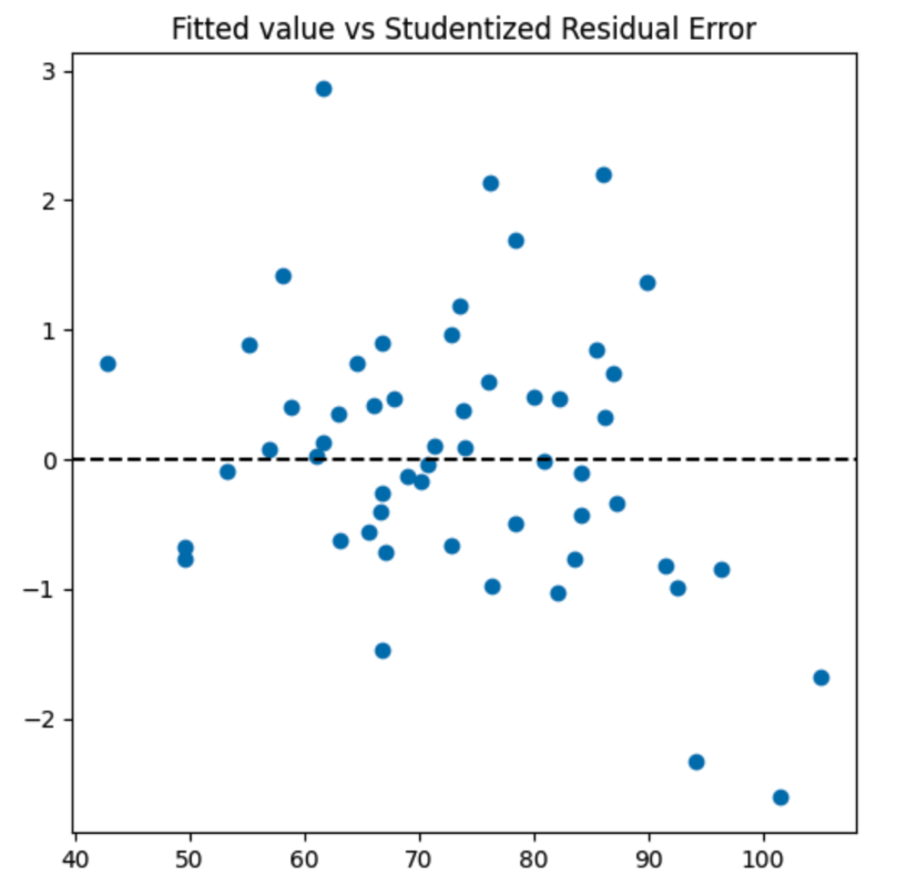 Идем дальше. Если построить график предсказанного результата от cтандартизированной ошибки, то получим: