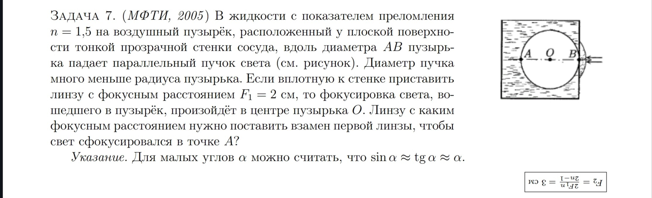 Задача 7. (МФТИ, 2005 ) В жидкости с показателем преломления