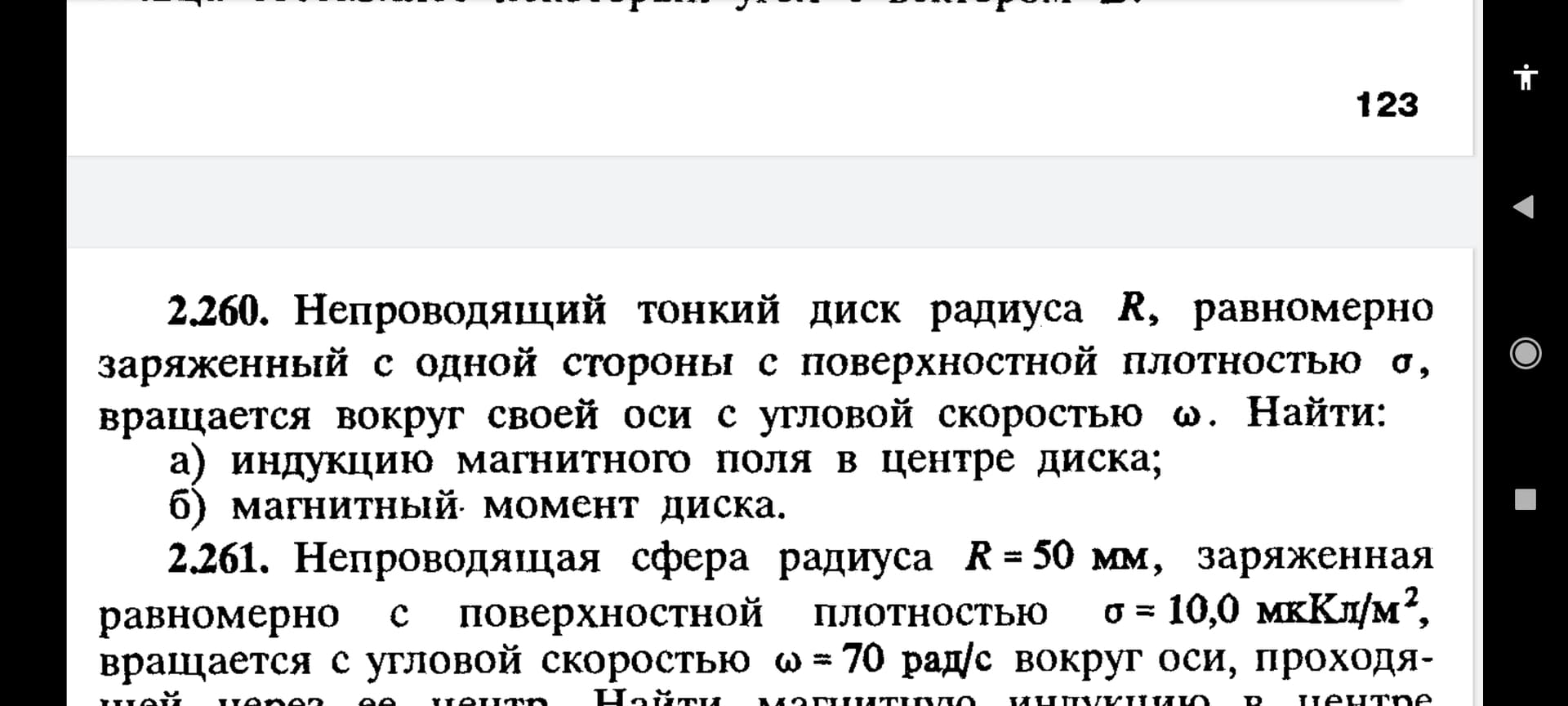 Непроводящий тонкий диск радиуса R, равномерно заряженный с одной стороны с поверхностной плотностью σ, вращается вокруг своей оси с угловой скоростью ω. Найти: