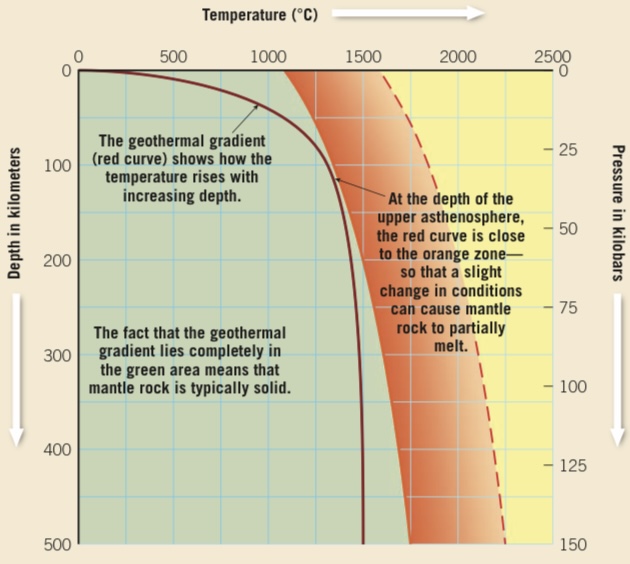 Ну, мантию мы классифицируем твердой. Несмотря на высокие температуры в ней, давление выше лежащих слоев повышает точку плавления, потому породы не являются жидкими. В астеносфере(одном из слоев верхней мантии) породы по температуре и относительно низкому давлению наиболее близки к точке плавления, потому слой является пластичным, но все еще твердым. Однако, небольшое изменение среды может привести к частичному плавлению пород. Одним из доказательств «твердости» мантии является способность S волн распространяться по мантии, так как S волны могут распространяться только по твердым материалам, которые могут «реагировать» на изменение формы.