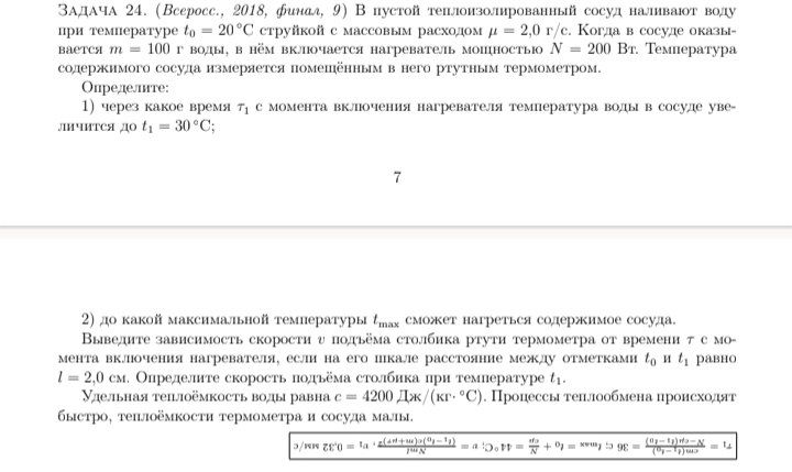 $$\tau = \frac{m(t_1 - t_0)c}{N - \mu(t_1 - t_0)c} \approx 36.2 \text{ с}$$