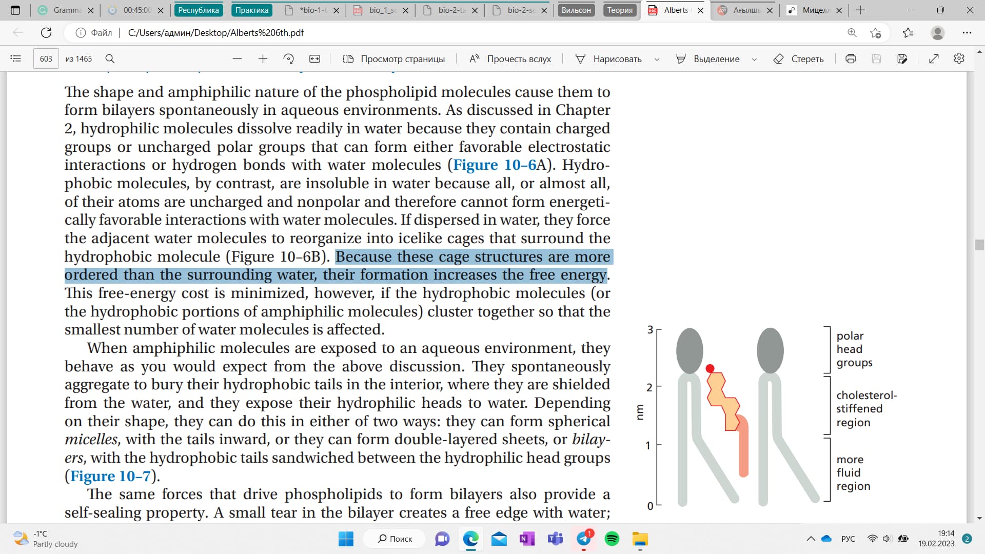 Разве образование мицелл не обусловлено тем, что свободная энергия системы уменьшается из-за удаление гидрофобных сегментов из водного раствора и образование водородных связей между молекулами воды? Плюсом в ядре мицелл возникают ван-дер-ваальсовые связи между гидрофобными частями. Можете скинуть страницу мбк где это сказано.