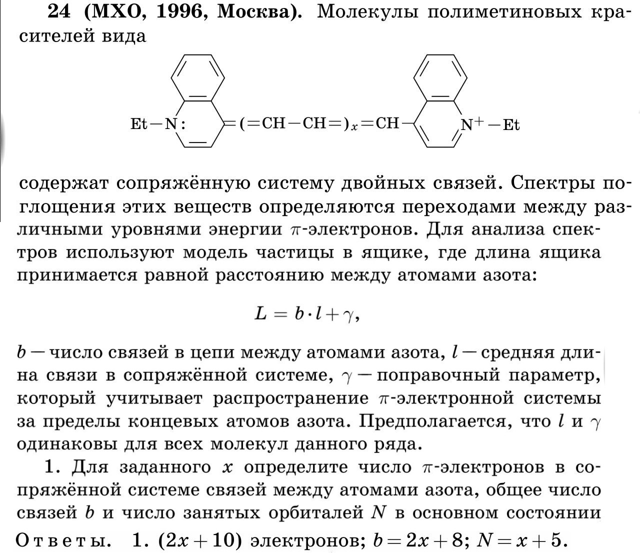 Тогда общее количество пи электронов = 11 + (x-1)2 = (9 + 2x)