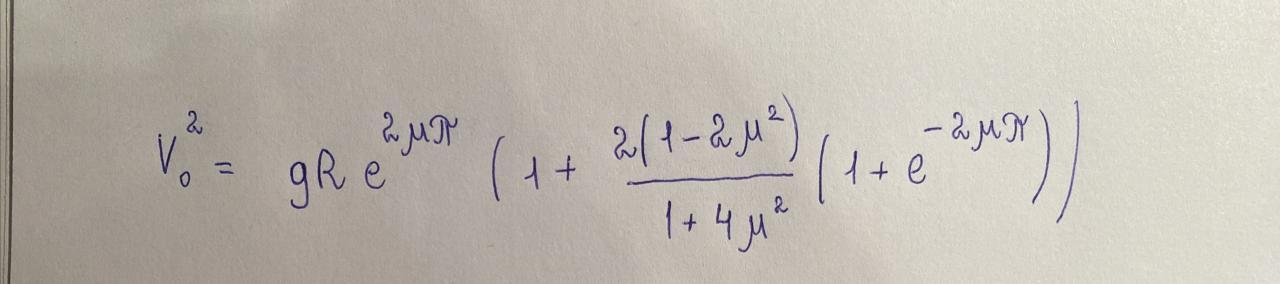 К сожалению, решение приведённое Алишером содержит ошибку. Это можно понять по тому, что при подстановке достаточно большого коэффициента трения в конечное выражение для ответа получается отрицательный квадрат скорости. Данную задачу можно решить другим методом, используя Метод Лагранжа при решении линейного дифференциального уравнения первого порядка полученного Алишером. Таким образом, получается ответ: