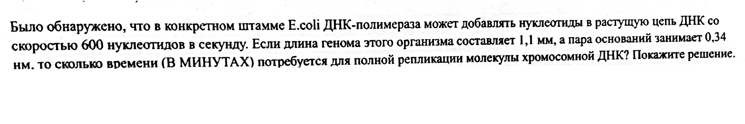 Если поделить длину генома на длину пары оснований, получится число пар оснований. Если это число поделить на 600, получится время в секундах. Дальше останется перевести в минуты.