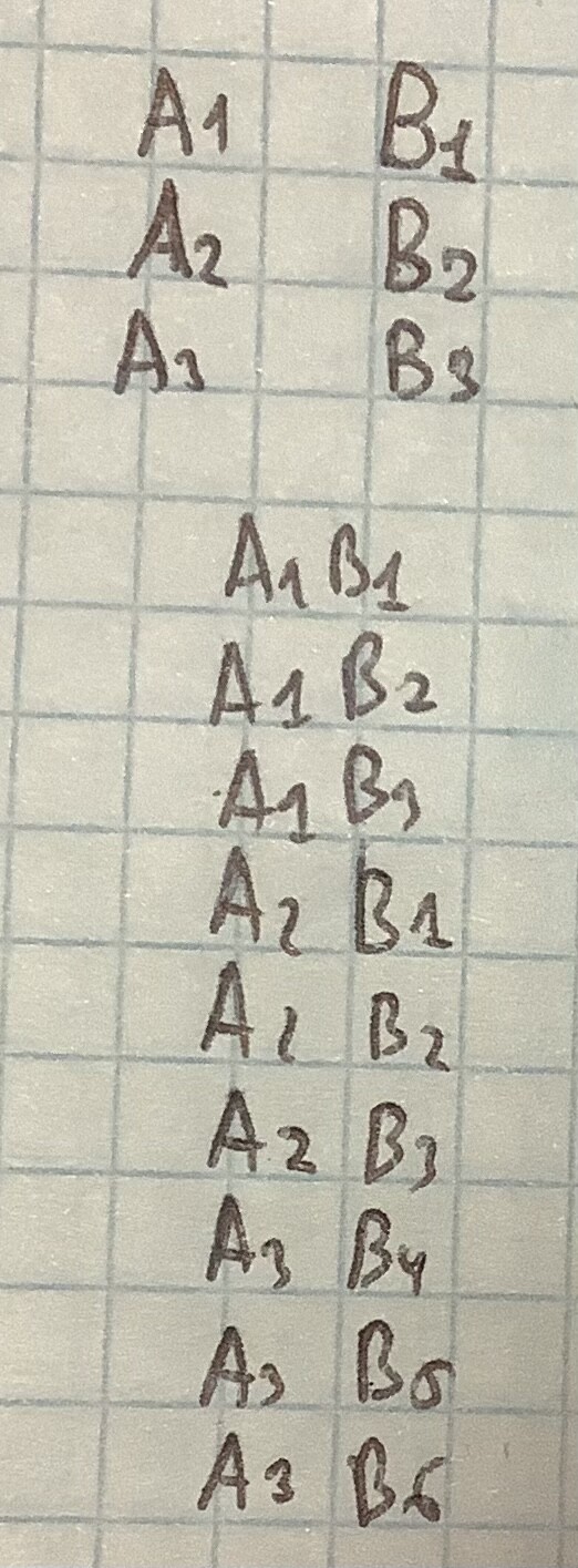 да, типо из A(1-10) и B(1-10) мы можем составить 100 пар, но только 9 из A(1-3) и А (1-3) которые нас удовлетворяют