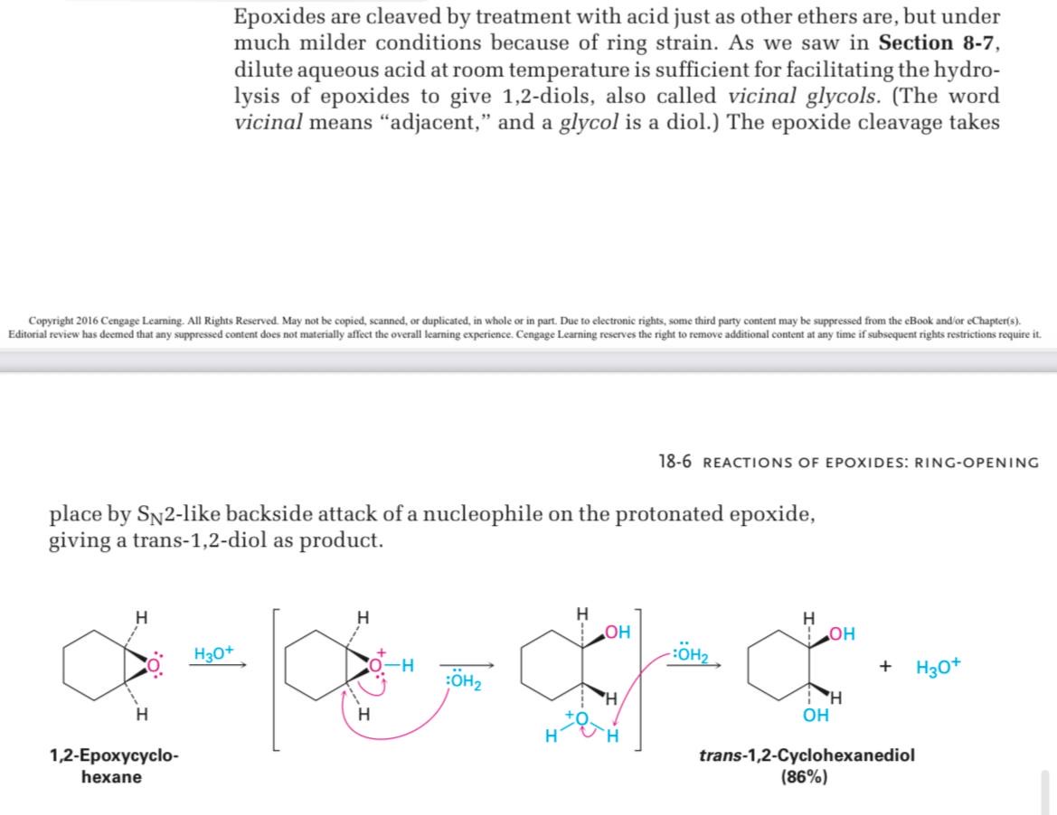 Кстати, нашёл информацию про “Pinacol rearrangement”(думаю это и есть ответ) в Клейдене и в Organic Chemistry Tutor. Может, оно как-то имеет отношение (not sure). Просто тогда появляется вопрос : ведь dihydroxylation of epoxides тоже происходит через кислотный катализатор и даёт дигидроксид-продукт и кислоту обратно (так как катализатор). Почему же та кислота потом не превращает дигидроксид в альдегид/кетон?