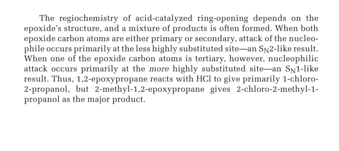 Аа, тогда уж извините, я как-то неправильно понял ваш вопрос . Карбокатионный интермедиат? (Разве dihydroxylation не concerted process? Если уж да, то, думаю, лучше сказать less hindered carbon atom). Мне кажется, там просто опечатка (idk, уж я точно не знаю, как получить альдегид из эпоксида просто через протонирование его). Ну и уж в McMurry довольно немало опечаток. (Надеюсь, кто-то знающий будет отвечать, если там не опечатка.)