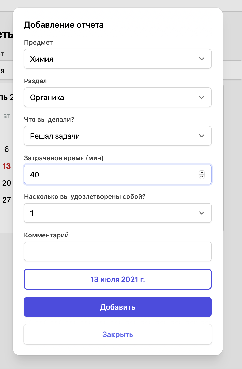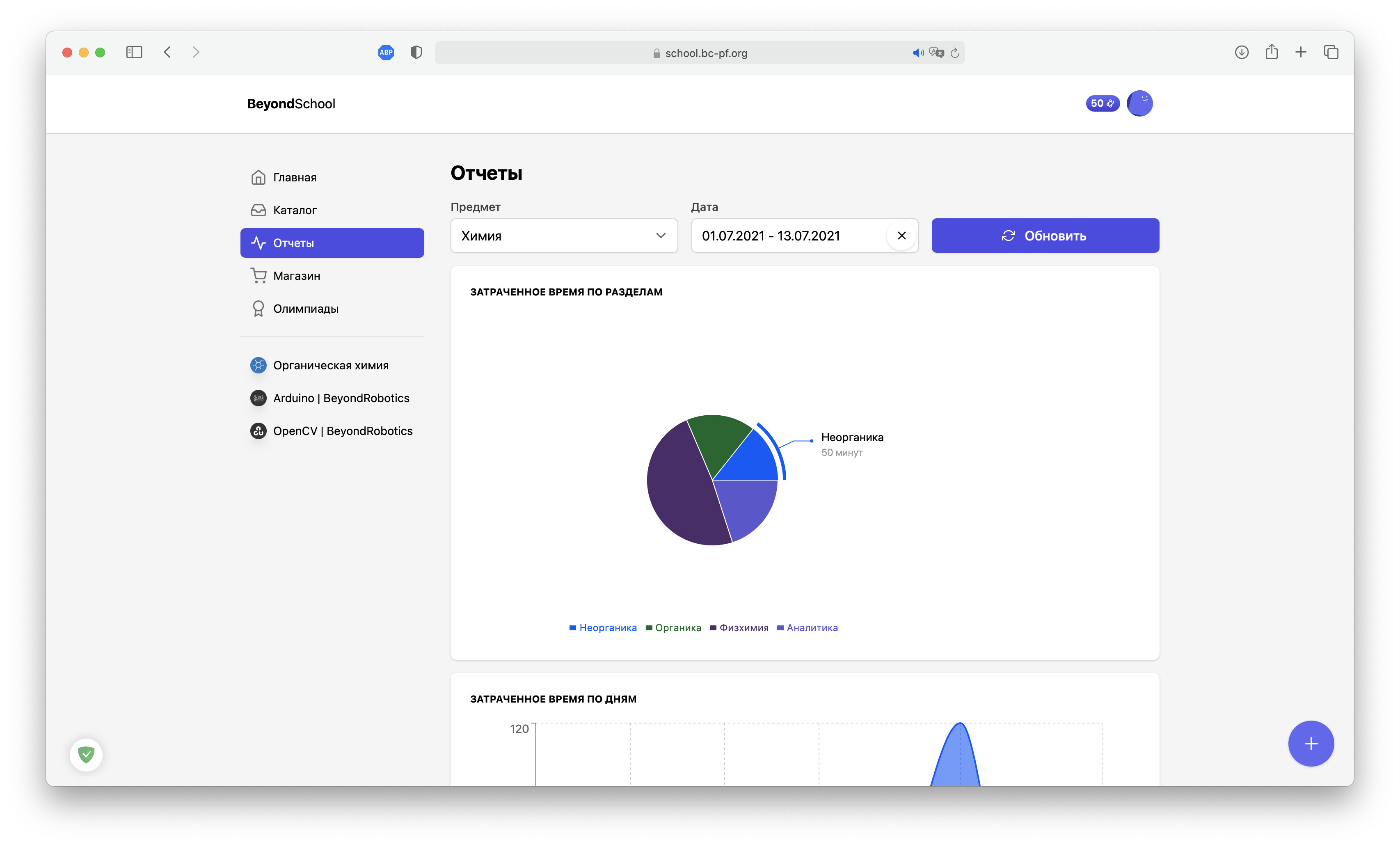 Отчеты можно оставлять по пяти предметам: химия, биология, физика, математика и география.