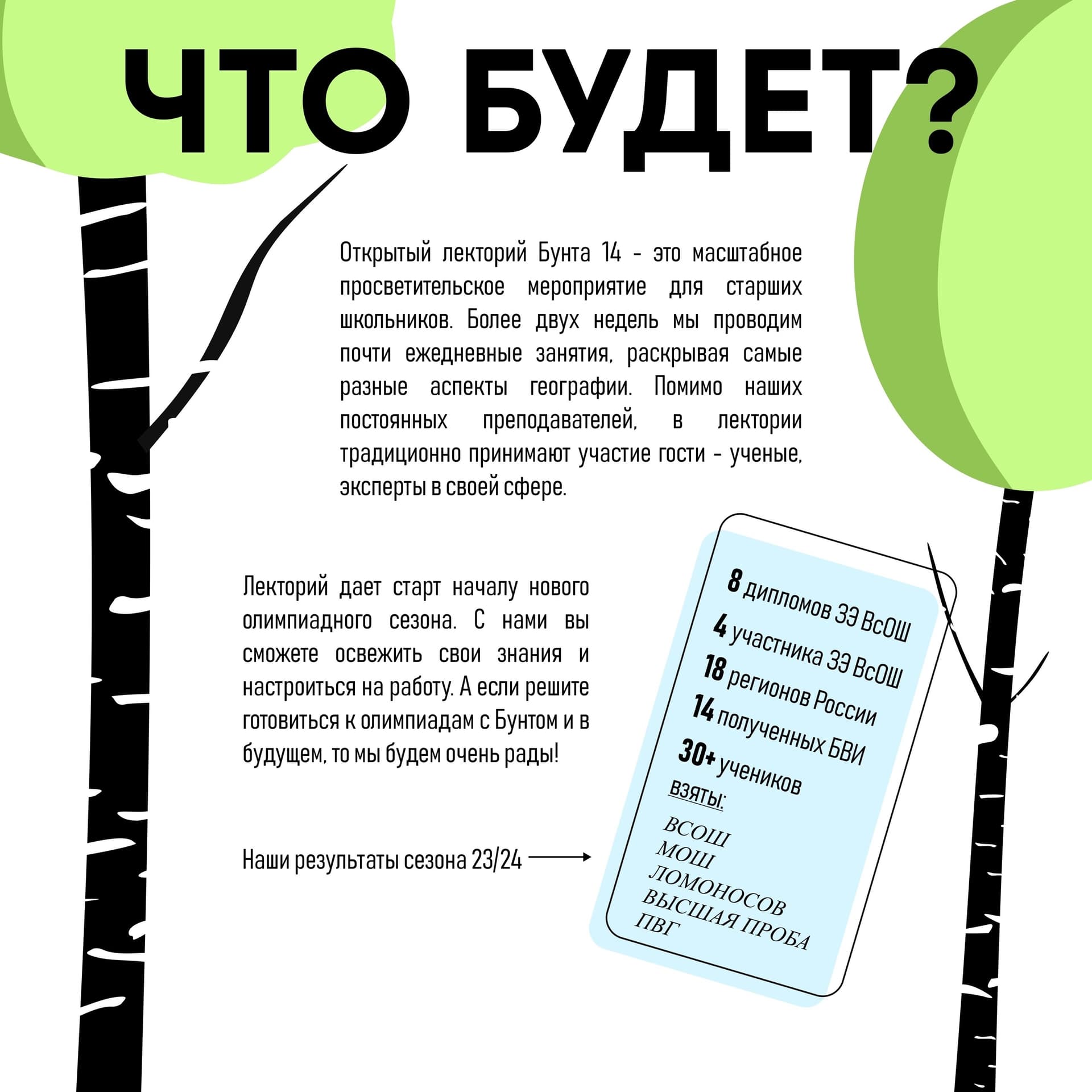 Наши знакомые из России (сообщество Бунт 14) устраивают бесплатный лекторий по географии, где у вас будет шанс посетить лекции на совершенно разные темы — от гляциологии до политической экономики, — некоторые из которых будут в том числе проведены активными учёными, а также медалистами российских (ВсОШ и не только) и международных олимпиад.