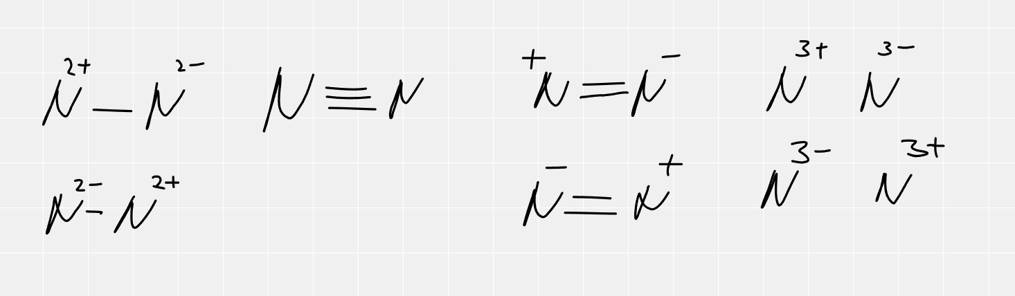 Теперь к примерам, возьмем молекулу азота, какие структуры мы можем для неё придумать. Да целую кучу