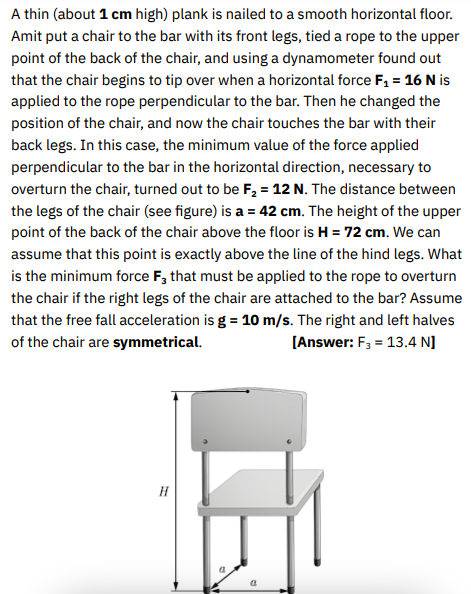 F_3=(F_1+F_2)\displaystyle\frac{H}{\sqrt{a^2+4H^2}}=13.44\space\text{N}.